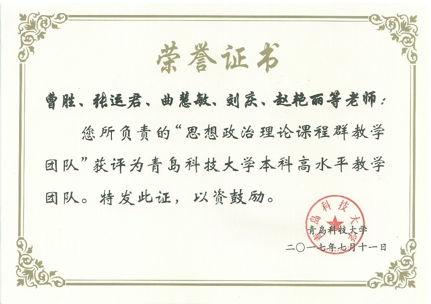青島科技大學(xué)本科高水平教學(xué)團隊: 曹勝、張運君、曲慧敏、劉慶、趙艷麗等