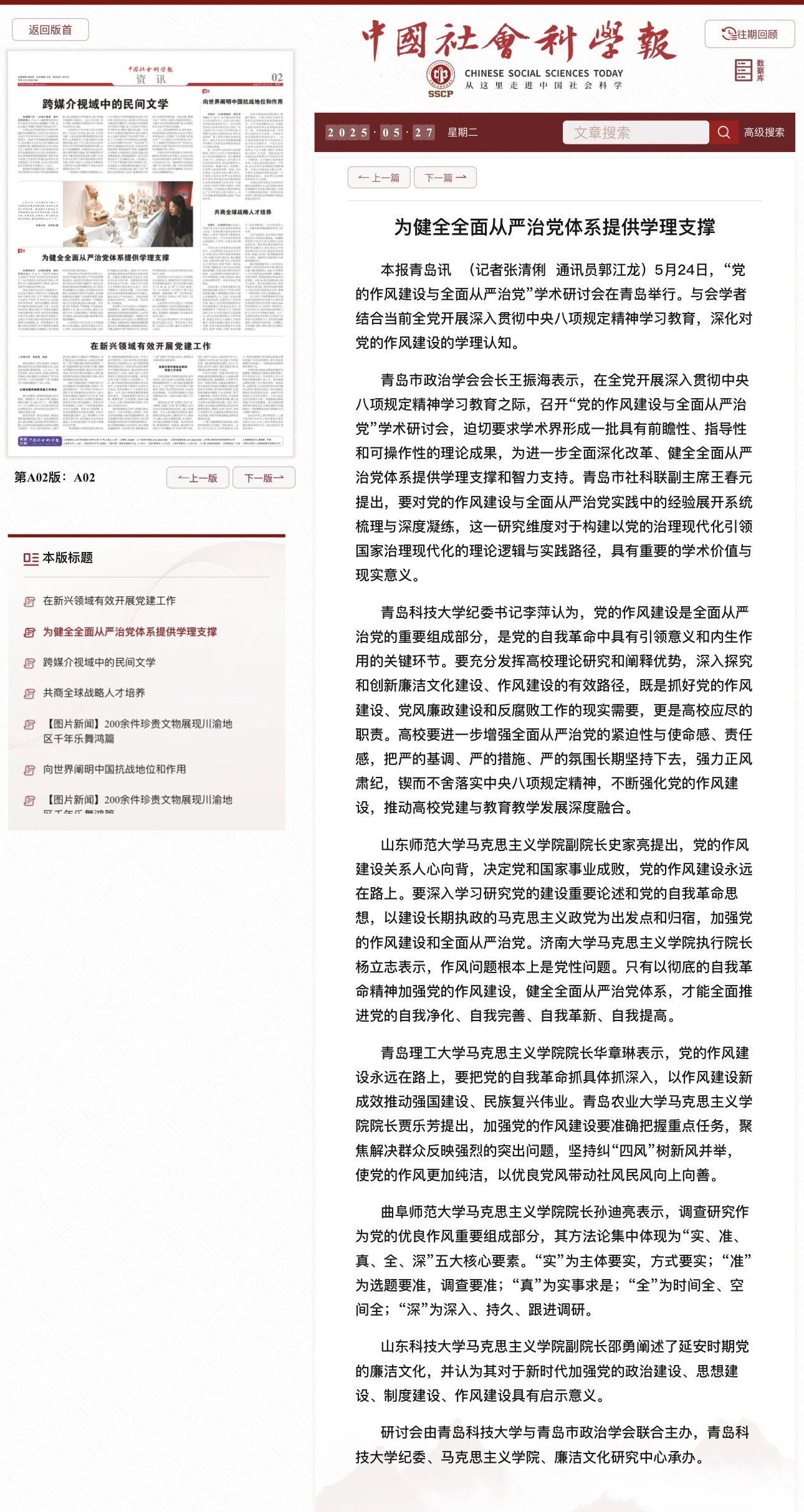 研討會由青島科技大學與青島市政治學會聯(lián)合主辦,青島科技大學紀委、馬克思主義學院、廉潔文化研究中心承辦。