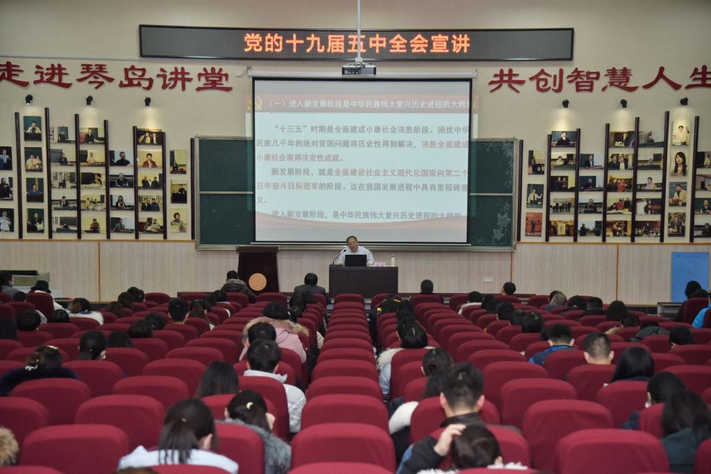 為深入學習宣傳貫徹黨的十九屆五中全會精神,把廣大黨員干部師生思想統(tǒng)一到全會精神上來,把力量凝聚到實現(xiàn)黨的十九屆五中全會確定的各項任務(wù)上來,根據(jù)青島市委教育工委安排,12月9日下午,青島科技大學馬克思主義學院院長、山東省統(tǒng)戰(zhàn)理論研究基地(青島科技大學)常務(wù)副主任兼秘書長、教授、碩士生導師曹勝來到青島理工大學琴島學院禮堂,作了黨的十九屆五中全會精神宣講。青島理工大學琴島學院各學院師生黨員、入黨積極分子代表、輔導員等400余人在現(xiàn)場聆聽了宣講會。