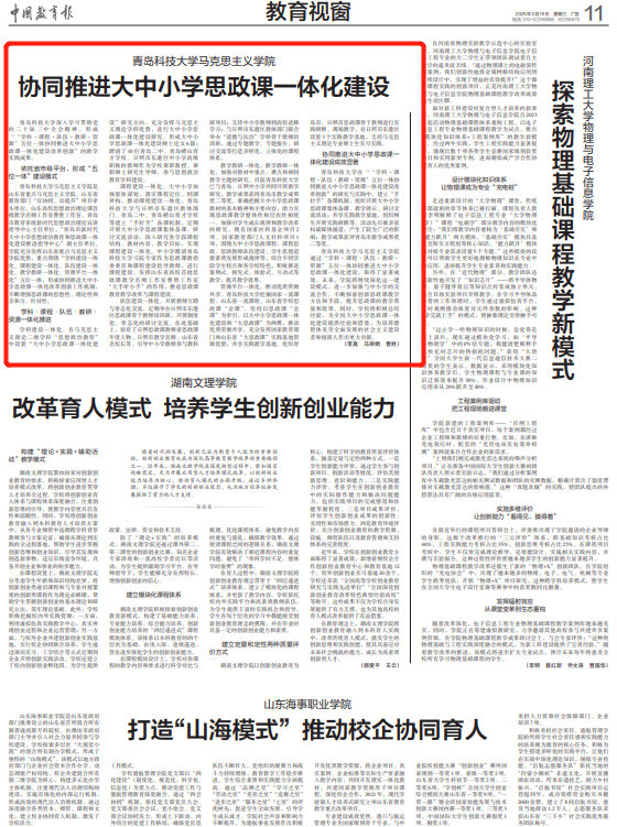《中國教育報(bào)》:《青島科技大學(xué)馬克思主義學(xué)院:協(xié)同推進(jìn)大中小學(xué)思政課一體化建設(shè)》