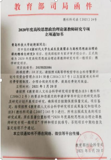 2020年度教育部思政課教師專項(xiàng):《新時(shí)代大學(xué)生成長發(fā)展需求與高校思想政治理論課的精準(zhǔn)化研究》