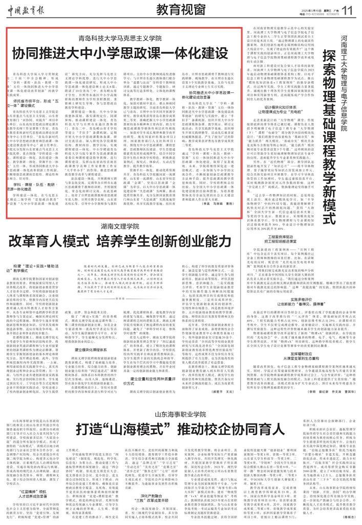 中國教育報20250319:《協(xié)同推進(jìn)大中小學(xué)思政課一體化建設(shè)》