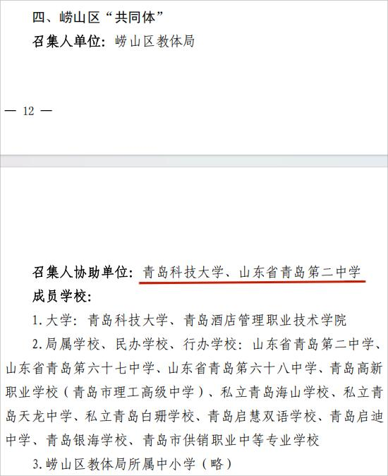 青教工委《“青島市新時(shí)代大中小學(xué)思政課一體化建設(shè)共同體”全域推進(jìn)機(jī)制》召集人協(xié)助單位