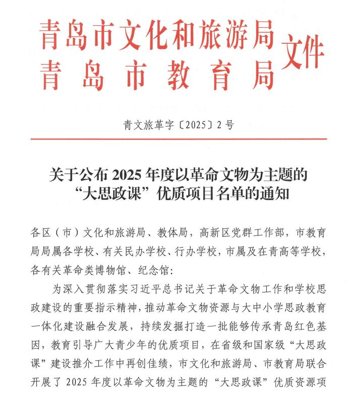青島市2025年度以革命文物為主題的“大思政課”優(yōu)質(zhì)項(xiàng)目