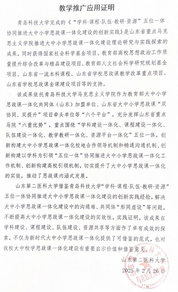 山東第二醫(yī)科大學(xué)教學(xué)成果推廣應(yīng)用證明